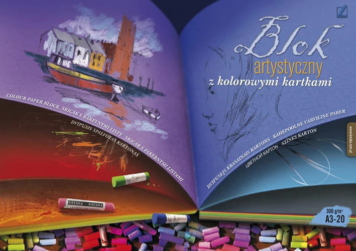 Blok techniczny z kolorowymi kartkami, gruby -gramatura 300 g/m2
