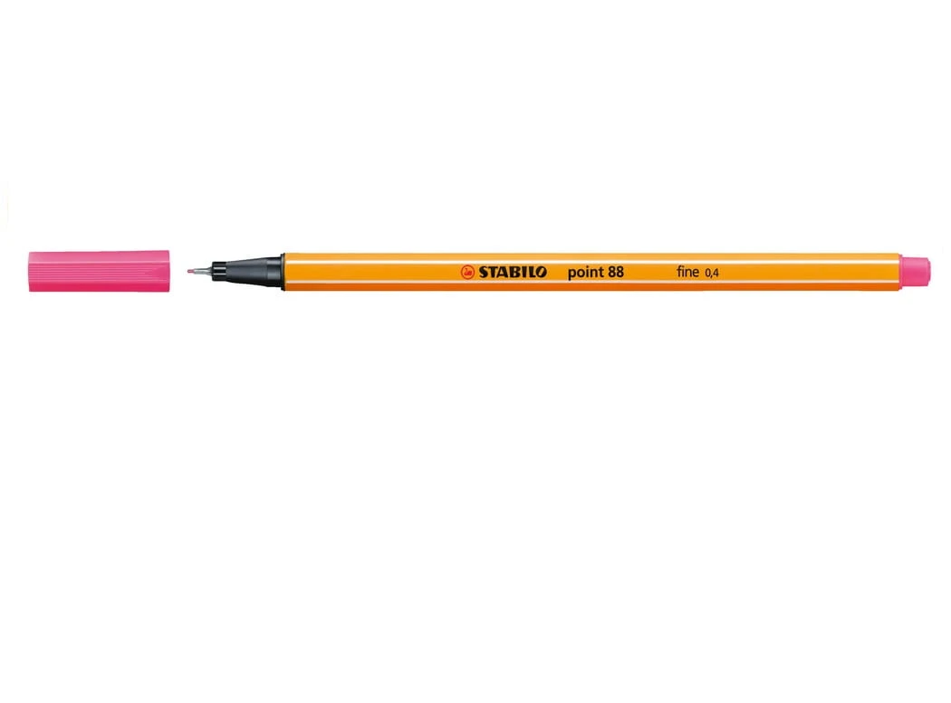 Point 88 marki STABILO jest dostępny w 47 intensywnych kolorach, wliczając 6 odcieni neonowych. Posiada końcówkę o grubości 0,4 mm, która dzięki specjalnej technologii tuszu nie zasycha przez dłuższy czas bez skuwki. Świetnie sprawdza się przy wymagających precyzji zadaniach, jako narzędzie do ozdabiania tekstu oraz robienia notatek.