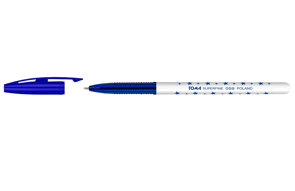 Długopis jednorazowy w plastikowej obudowie w gwiazdki w kolorze tuszu, wentylowana nasadka, trwała kulka z węglików spiekanych wolframu 0.5 mm. Super cienko-piszący opatentowany wkład Floating Ball ® szwajcarskiej firmy Premec.