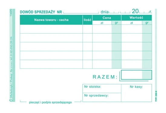 | zastosowanie: | rachunki i inne dowody sprzedaży |