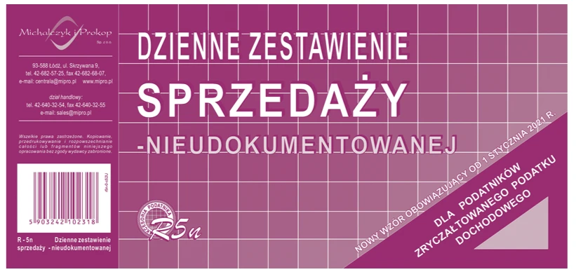 R5 Dzienne zestawienie sprzedaży - nieudokumentowanej (dla podatników zryczałtowanego podatku dochodowego)