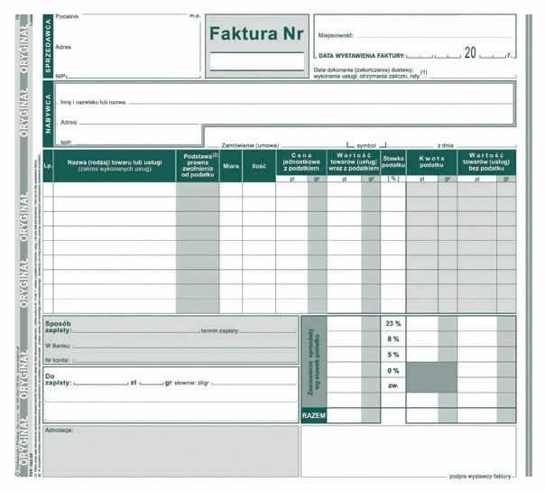 | zastosowanie: | faktury i inne dokumenty wynikające z przepisów o podatku od towarów i usług |