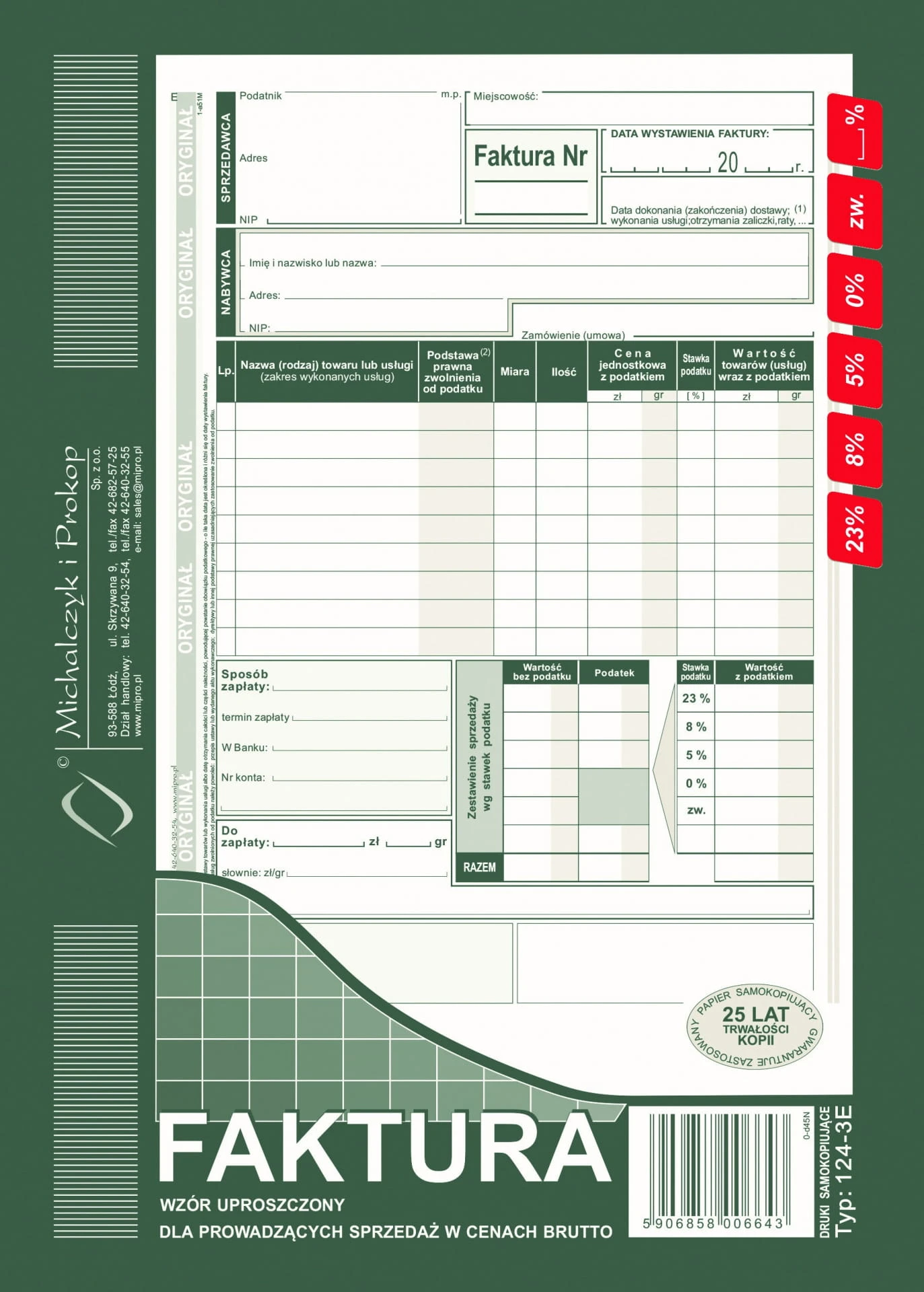 druk faktura BRUTTO A5 pion 124-3E