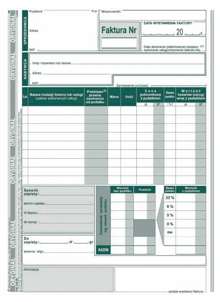 | zastosowanie: | faktury i inne dokumenty wynikające z przepisów o podatku od towarów i usług |