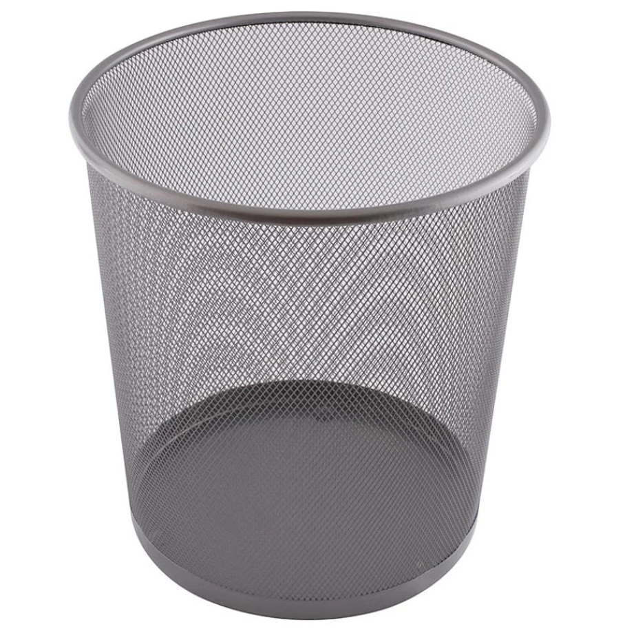 Oryginalny i elegancki kosz do biura i do domu, wykonany z cienkiej siatki metalowej. Średnica 265 mm, wysokość 280 mm. Kolor Srebrny