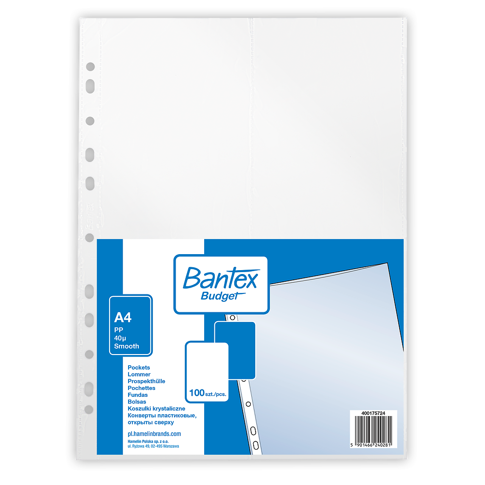 Krystaliczne koszulki Budget w formacie A4, otwierane od góry. Przezroczysta, polipropylenowa folia jest antystatyczna i antyrefleksyjna, co ułatwia przechowywanie koszulek oraz zapewnia doskonałą czytelność dokumentów. 100 SZT. koszulek zapakowanych w folię, dzięki czemu zajmują niewiele miejsca.
