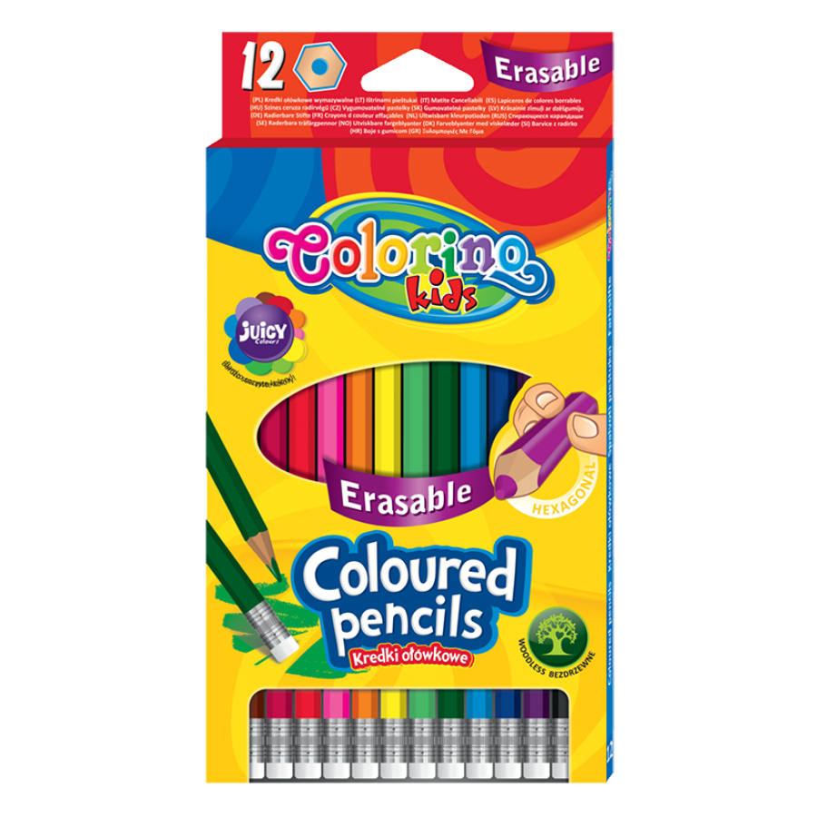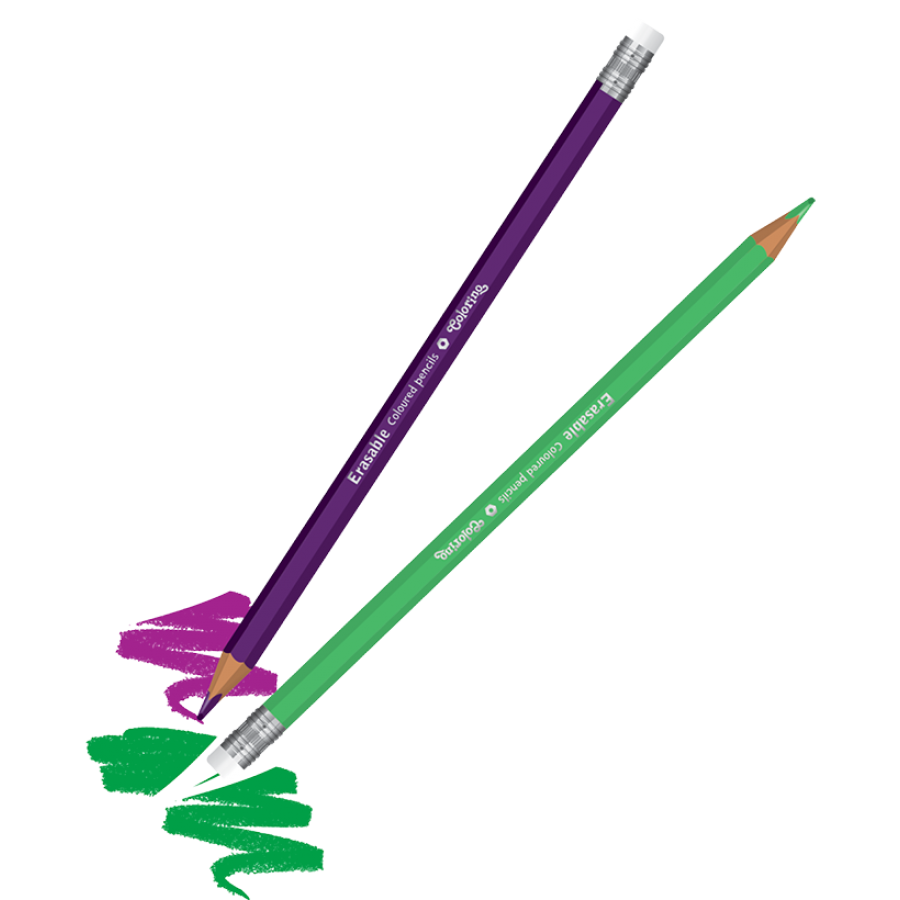 Wymazywalne, bezdrzewne kredki, o heksagonalnym przekroju zakończone gumką. Specjalna formuła grafitu oraz gumka która nie pozostawia smug sprawia, że efekt wymazywania jest bardzo wysoki.