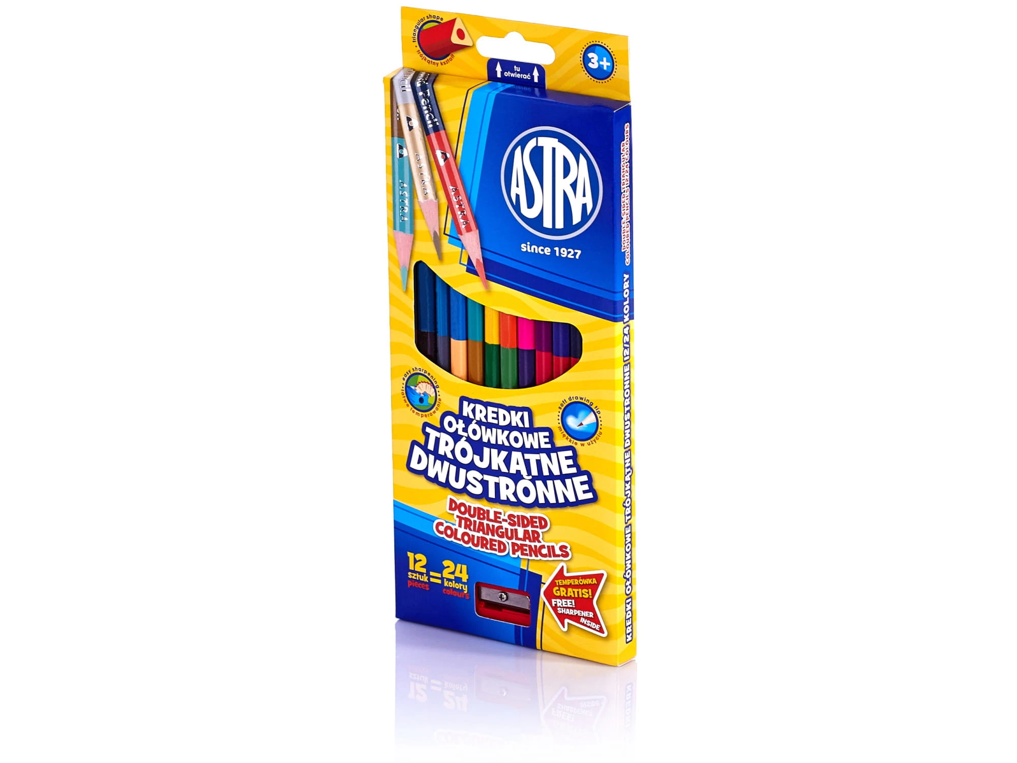 KREDKI OŁÓWKOWE TRÓJKĄTNE DWUSTRONNE ASTRA 12=24 KOLORY + TEMPERÓWKA