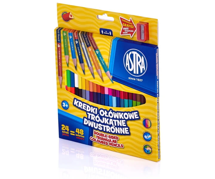 Kredki ołówkowe 24 sztuk = 48 kolorów + temperówka