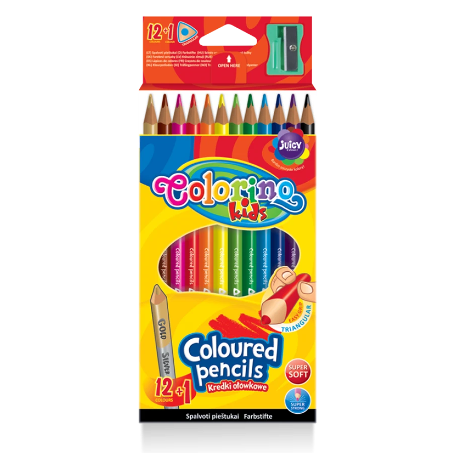 Trójkątne kredki Colorino Kids, tak jak wszystkie nasze kredki ołówkowe, posiadają niezwykle miękki rysik, dzięki któremu rysowanie to prawdziwa przyjemność.
