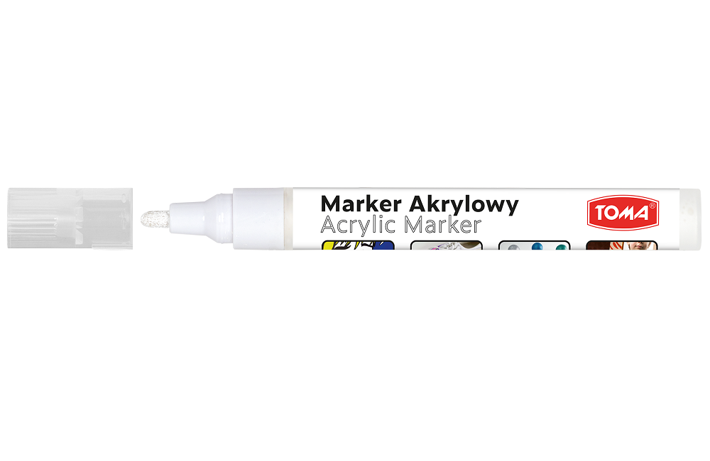 Marker Akrylowy do zdobienia i malowania po papierze, kartonie, płótnie, styropianie, drewnie i wielu innych powierzchniach. Farba akrylowa na bazie wody, nietoksyczna, nie zawiera ksylenu. Przed użyciem dobrze wstrząsnąć i naciskać końcówkę, aż do do wypłynięcia farby.
