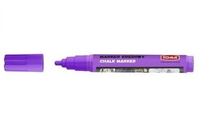 Marker z płynną kredą, do pisania po tablicach czarnych, białych, po szkle i powierzchniach plastikowych. Zmywalny wodą np. tradycyjną gąbką, do użytku wewnątrz pomieszczeń, nasączenie końcówki fibrowe, bezwonny tusz pigmentowy, nie zawiera xylenu.