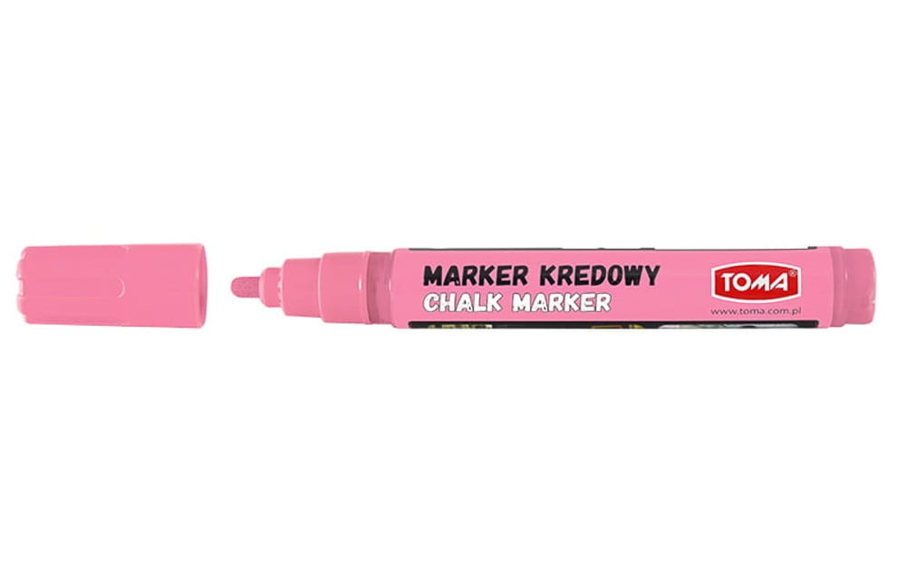 Marker z płynną kredą, do pisania po tablicach czarnych, białych, po szkle i powierzchniach plastikowych. Zmywalny wodą np. tradycyjną gąbką, do użytku wewnątrz pomieszczeń, nasączenie końcówki fibrowe, bezwonny tusz pigmentowy, nie zawiera xylenu.