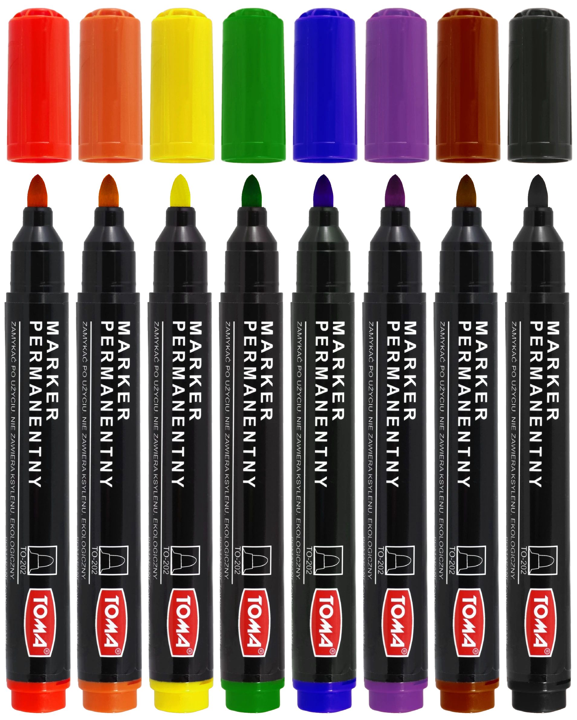 Marker permanentny z wyjątkowo trwałym tuszem wodoodpornym, nie zawierający ksylenu i toluenu. Do pisania po wszystkich powierzchniach. 7 wyrazistych kolorów. Okrągła końcówka o grubości 2.5 mm.
