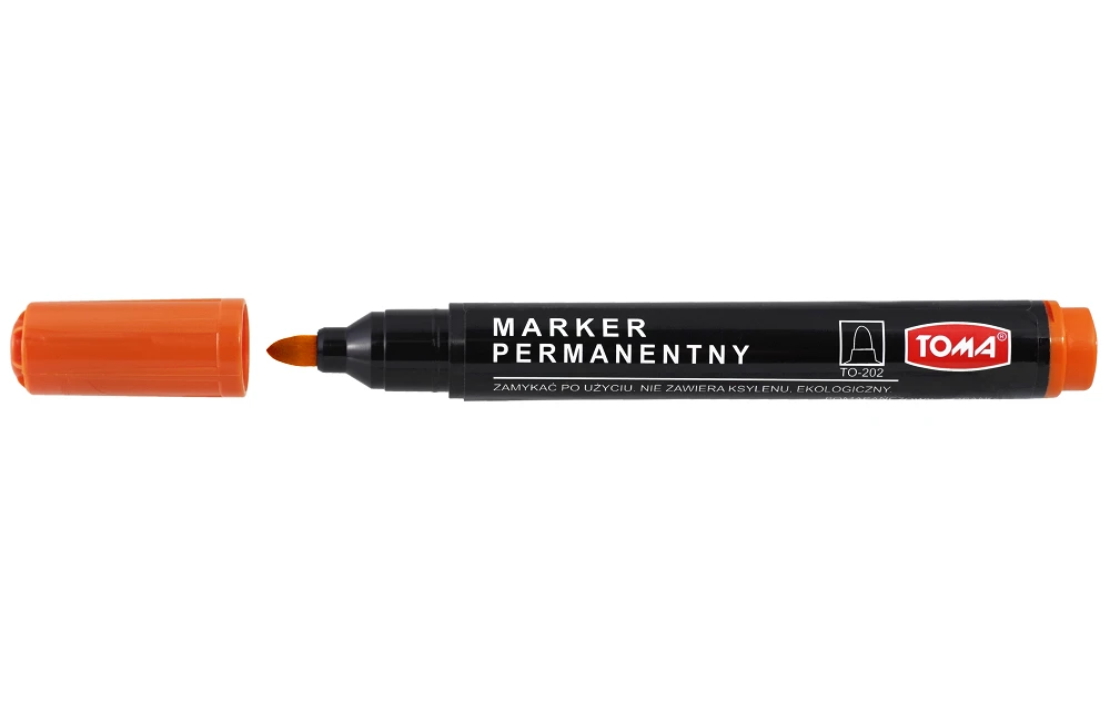 Marker permanentny z wyjątkowo trwałym tuszem wodoodpornym, nie zawierający ksylenu i toluenu. Do pisania po wszystkich powierzchniach. 7 wyrazistych kolorów. Okrągła końcówka o grubości 2.5 mm.