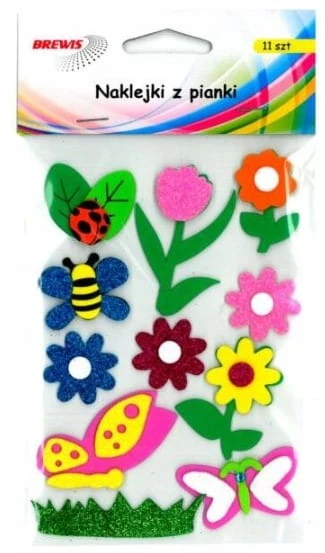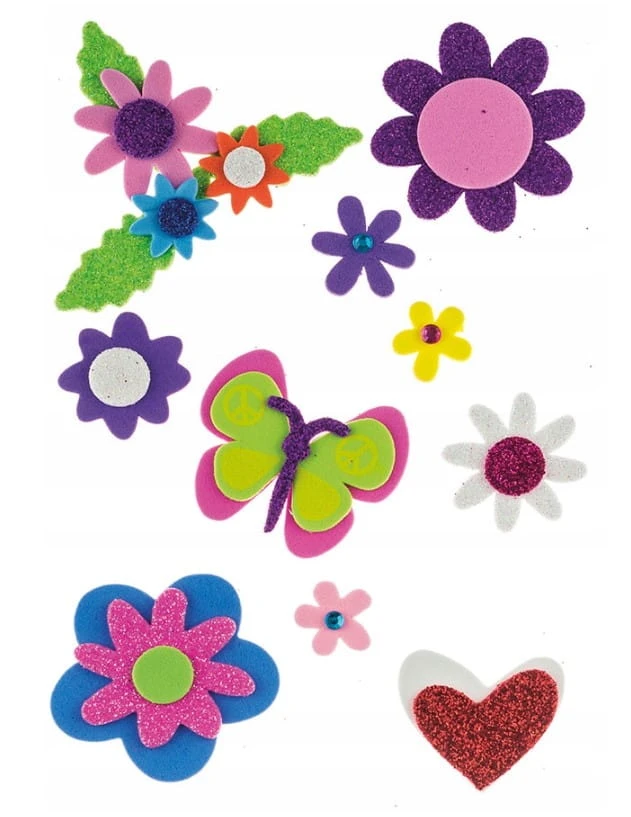 naklejki z pianki kwiatki/motylki brokatowe (11szt ) PVC102 Brewis