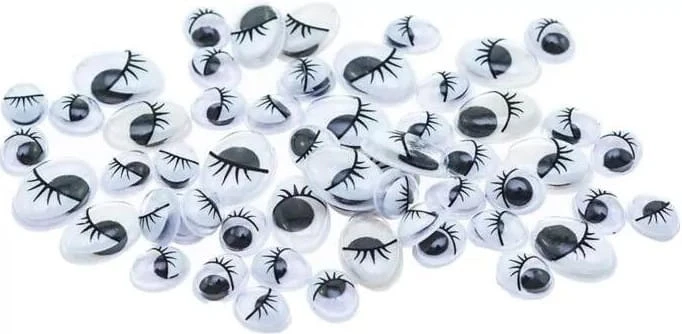 - samoprzylepne oczka z ruchomymi, czarnymi źrenicami i rzęsami