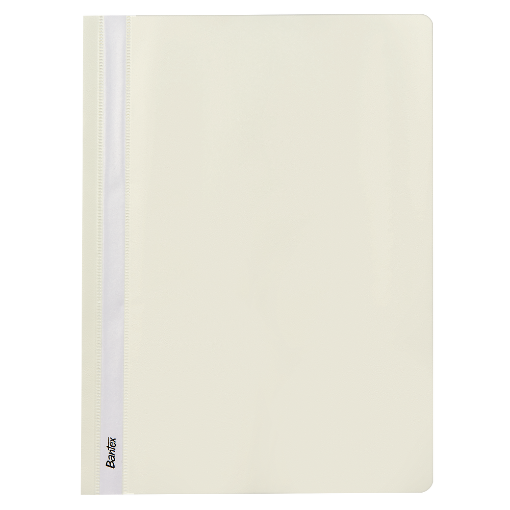 Klasyczne skoroszyty w formacie A4, wykonane z polipropylenowej folii. Przednia okładka o grubości 120 mic. jest przezroczysta dla doskonałej widoczności dokumentów. Tylna okładka o grubości 170 mic. została wykonana z nieprzezroczystej, żółtej folii. Metalowe wąsy bezpiecznie mocują dokumenty w skoroszycie. Na grzbiecie znajduje się wymienny pasek do opisu zawartości.