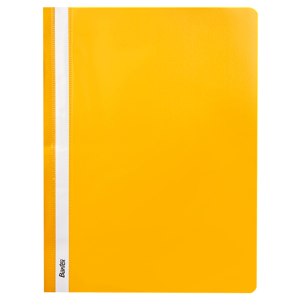 Klasyczne skoroszyty w formacie A4, wykonane z polipropylenowej folii. Przednia okładka o grubości 120 mic. jest przezroczysta dla doskonałej widoczności dokumentów. Tylna okładka o grubości 170 mic. została wykonana z nieprzezroczystej, żółtej folii. Metalowe wąsy bezpiecznie mocują dokumenty w skoroszycie. Na grzbiecie znajduje się wymienny pasek do opisu zawartości.