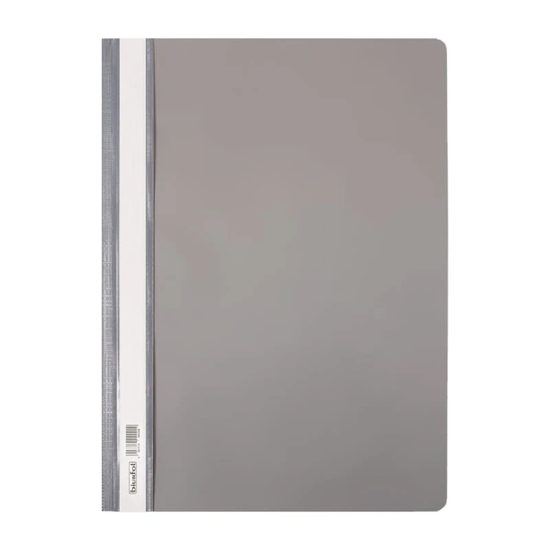 Skoroszyt plastikowy z przezroczystą przednią okładką i kolorową tylną ze sztywnego i mocnego PCV.