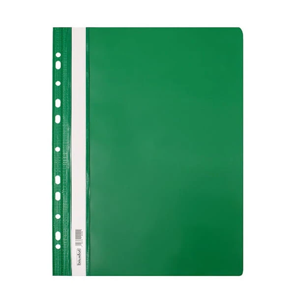 Skoroszyt plastikowy z przezroczystą przednią okładką i kolorową tylną ze sztywnego i mocnego PCV.