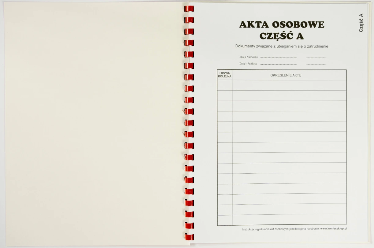 Teczki do akt osobowych bindowane wewnętrznie.