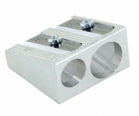 Wytrzymała temperówka metalowa z dwoma otworami na ołówki o średnicy 11mm i 8 mm, możliwość wymiany ostrza.