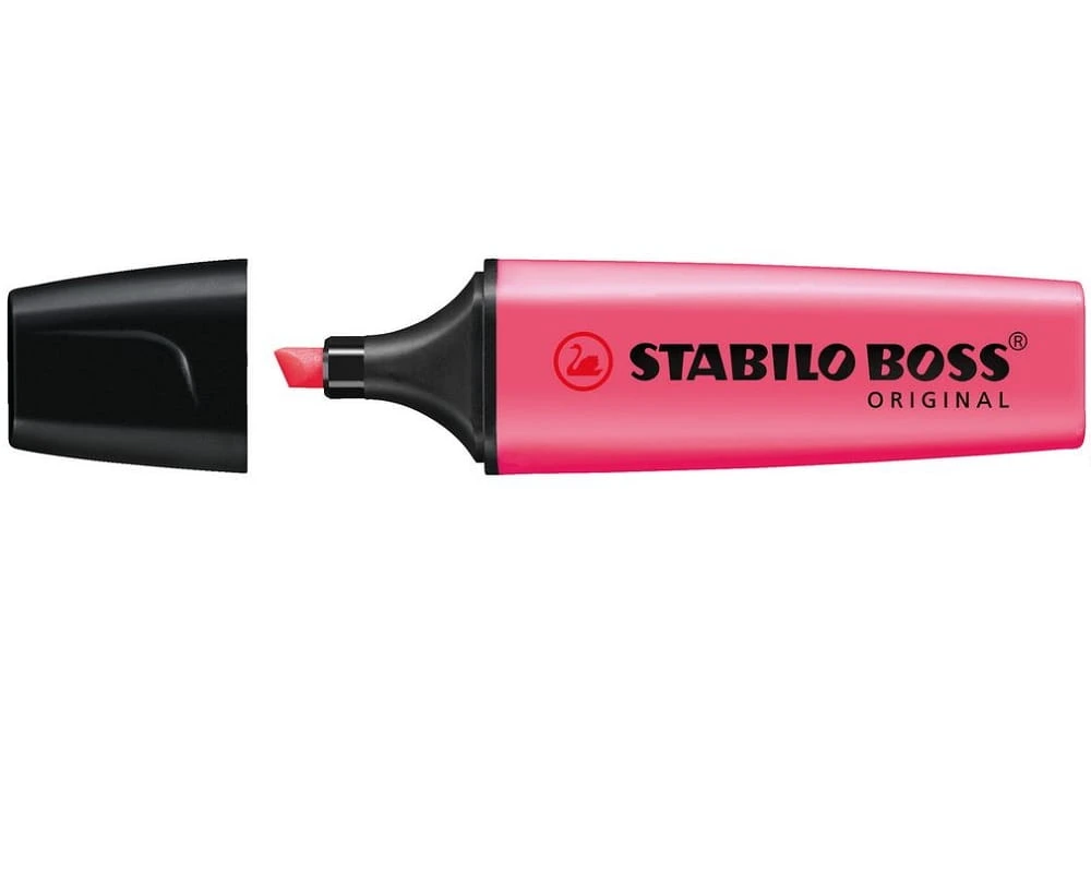 Zakreślacz fluorescencyjny z tuszem na bazie wody, do pisania na wszystkich rodzajach papieru (również faksowym i samokopiującym). Duża odporność na wysychanie. Dostępny w 9 kolorach, szerokość linii od 2 do 5 mm. Kolor różowy.