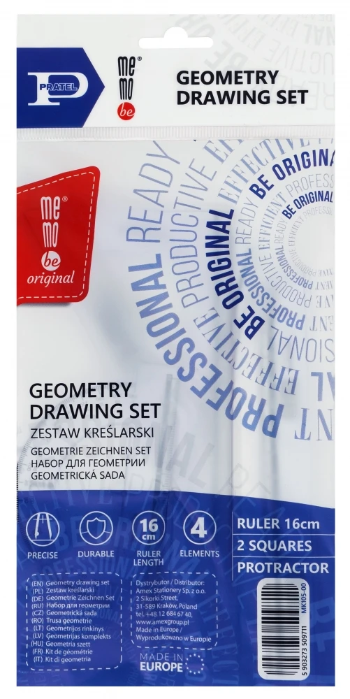 zestaw geometryczny / kreślarski linijka 16cm Pratel