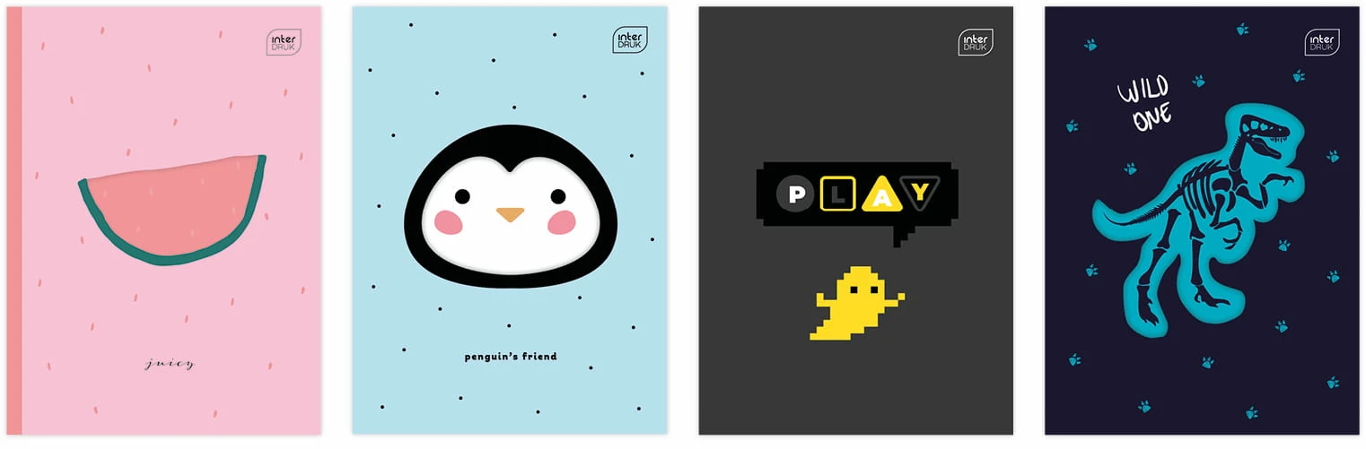 Format: A5. Liczba kartek: 16. Zadruk w kolorową trzylinię. Zaokrąglone rogi. Okładka wyróżnia się modnym wycięciem, które stanowi zarys graficzny, a wraz z kolorową kartką umieszczoną pod okładką tworzy estetyczny i kolorowy obrazek.