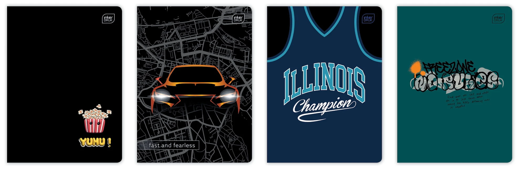 Duża różnorodność wzorów, dopasowana do grup docelowych. Zeszyty w intensywnych kolorystycznie grafikach, zaprojektowane zgodnie z aktualnymi trendami w designie i modzie tak, aby sprostać wysokim oczekiwaniom każdego ucznia. Wytrzymałe okładki pokryte lakierem UV.