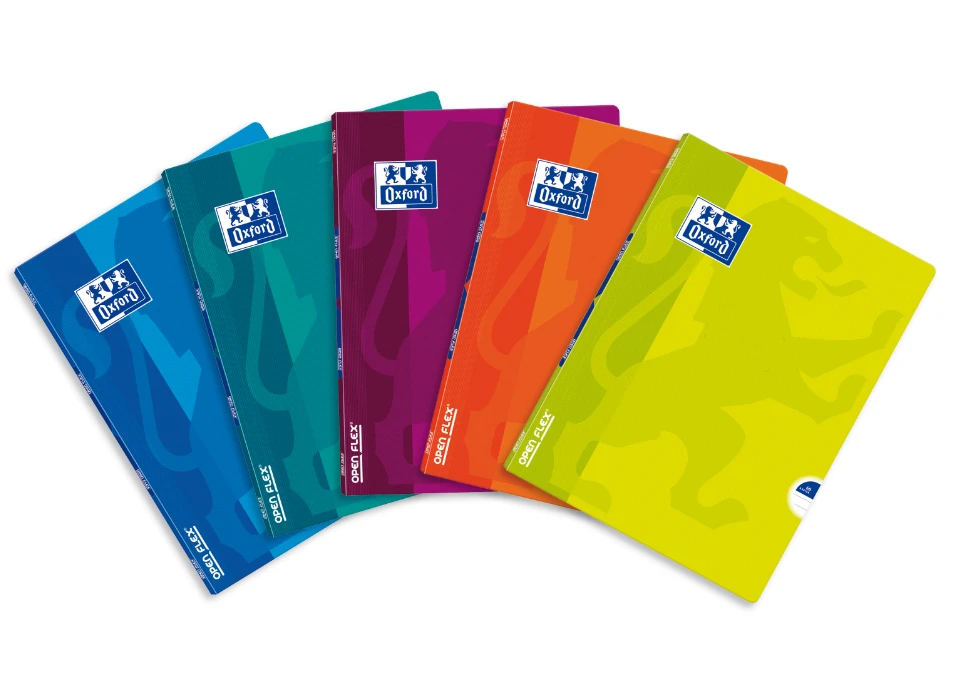 - Okładki zeszytów Open Flex, dzięki zastosowaniu wyjątkowego patentu produkcyjnego, są niezwykle elastyczne i wygodne oraz zapewniają optymalne otwarcie o 180°.